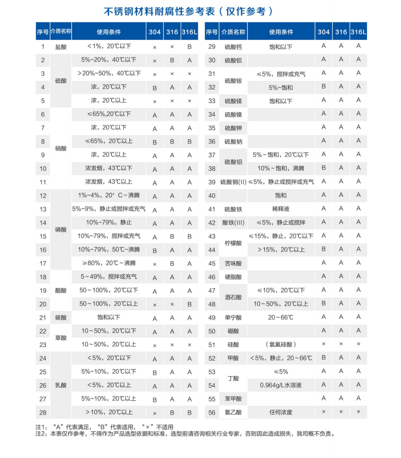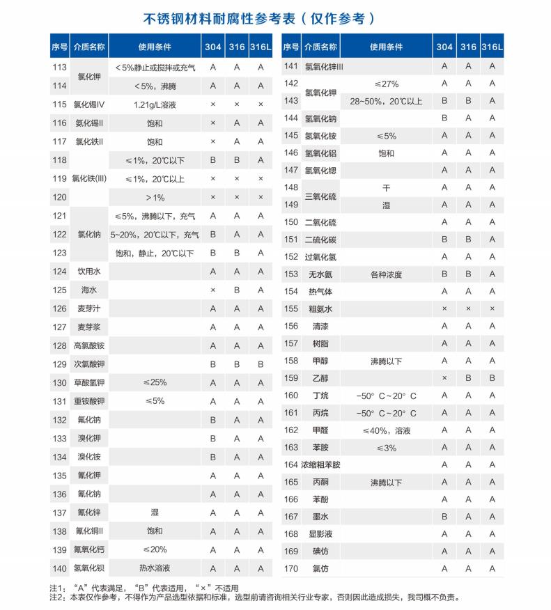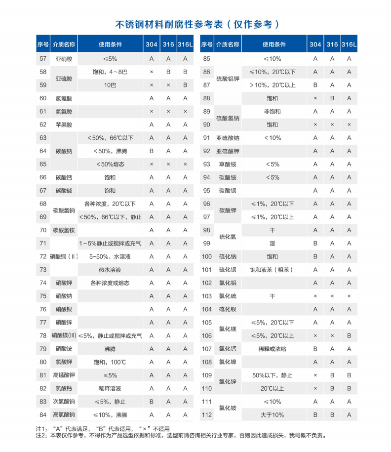 4、输送介质的 PH 值 304(4 - 10),316(2 - 13)。